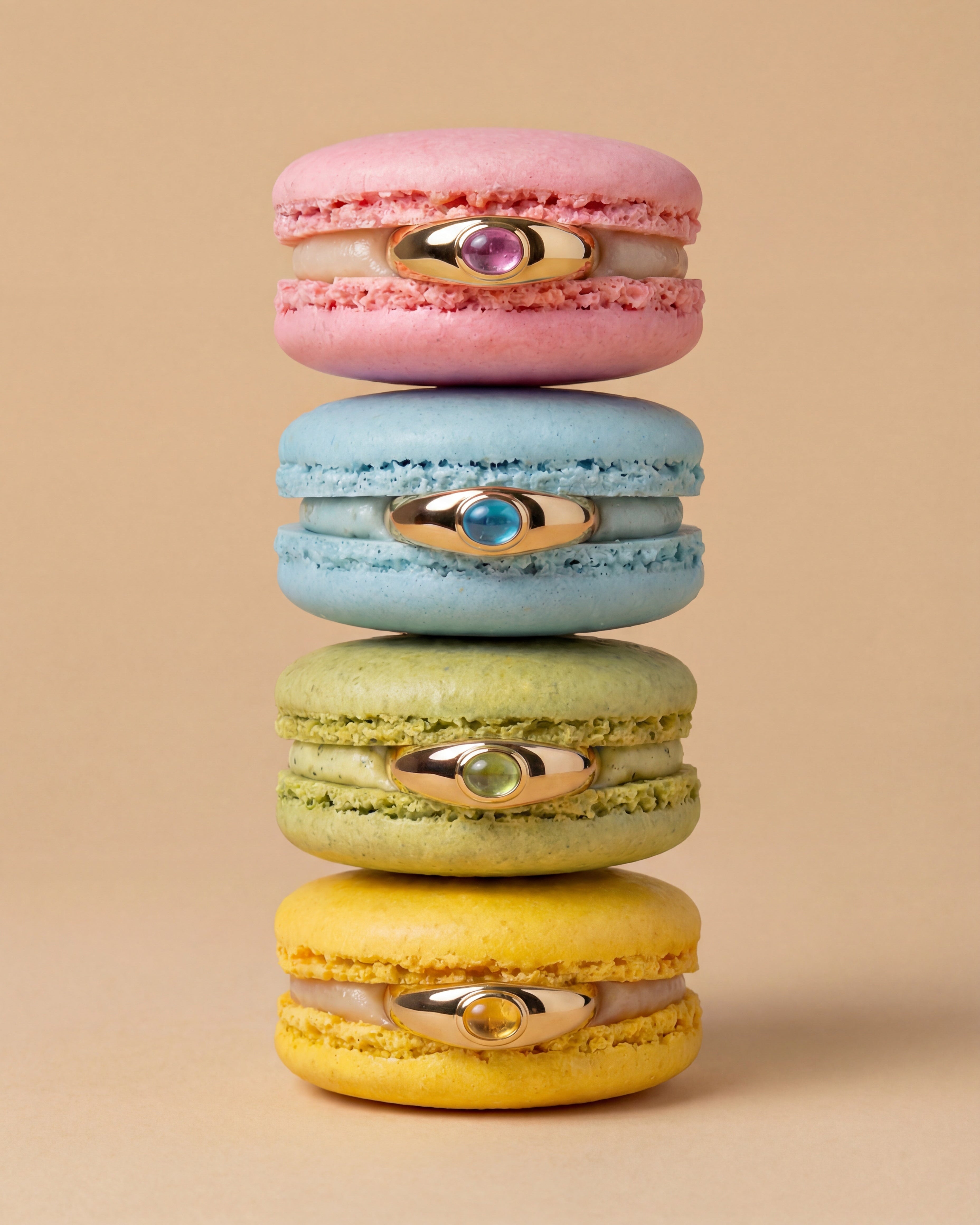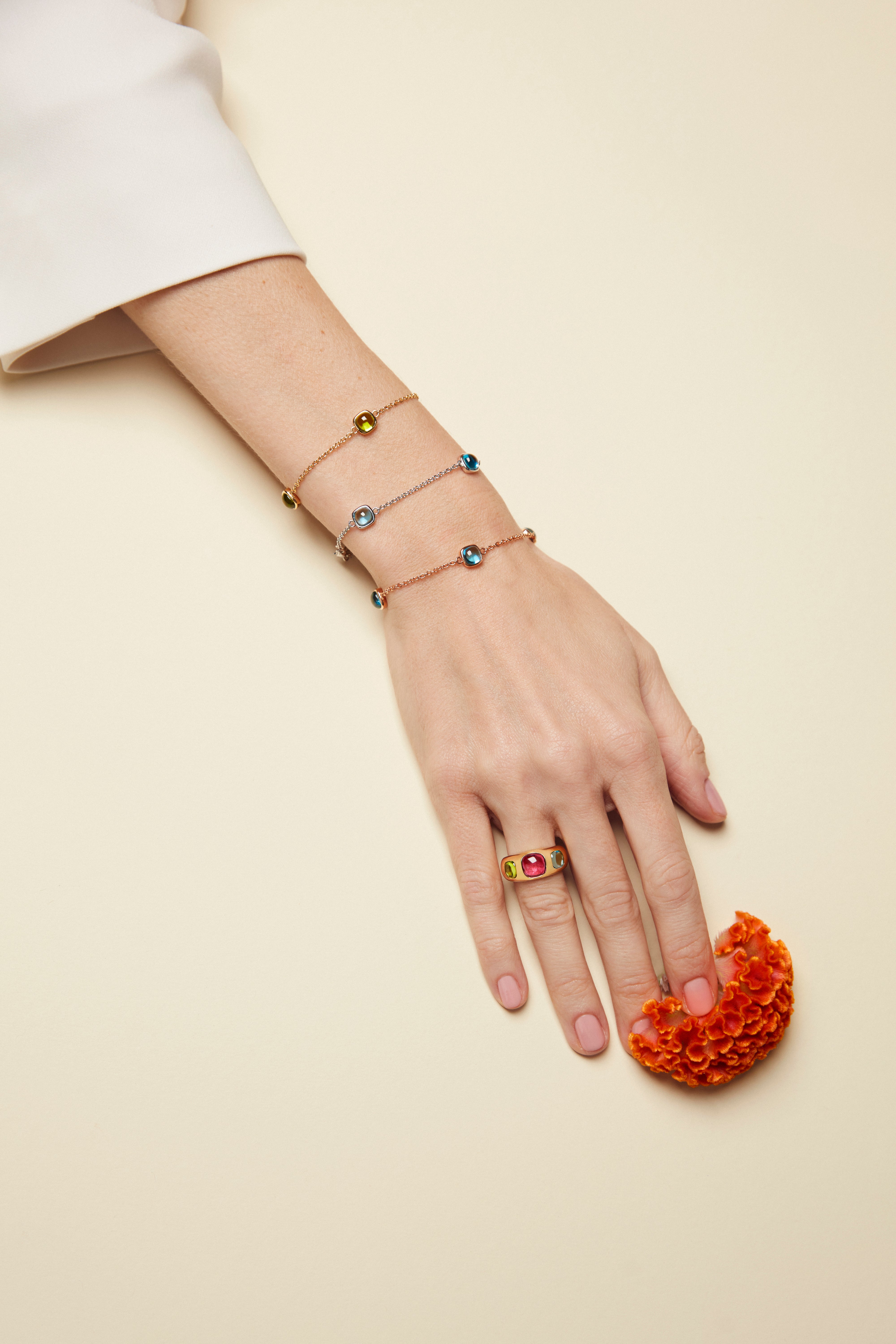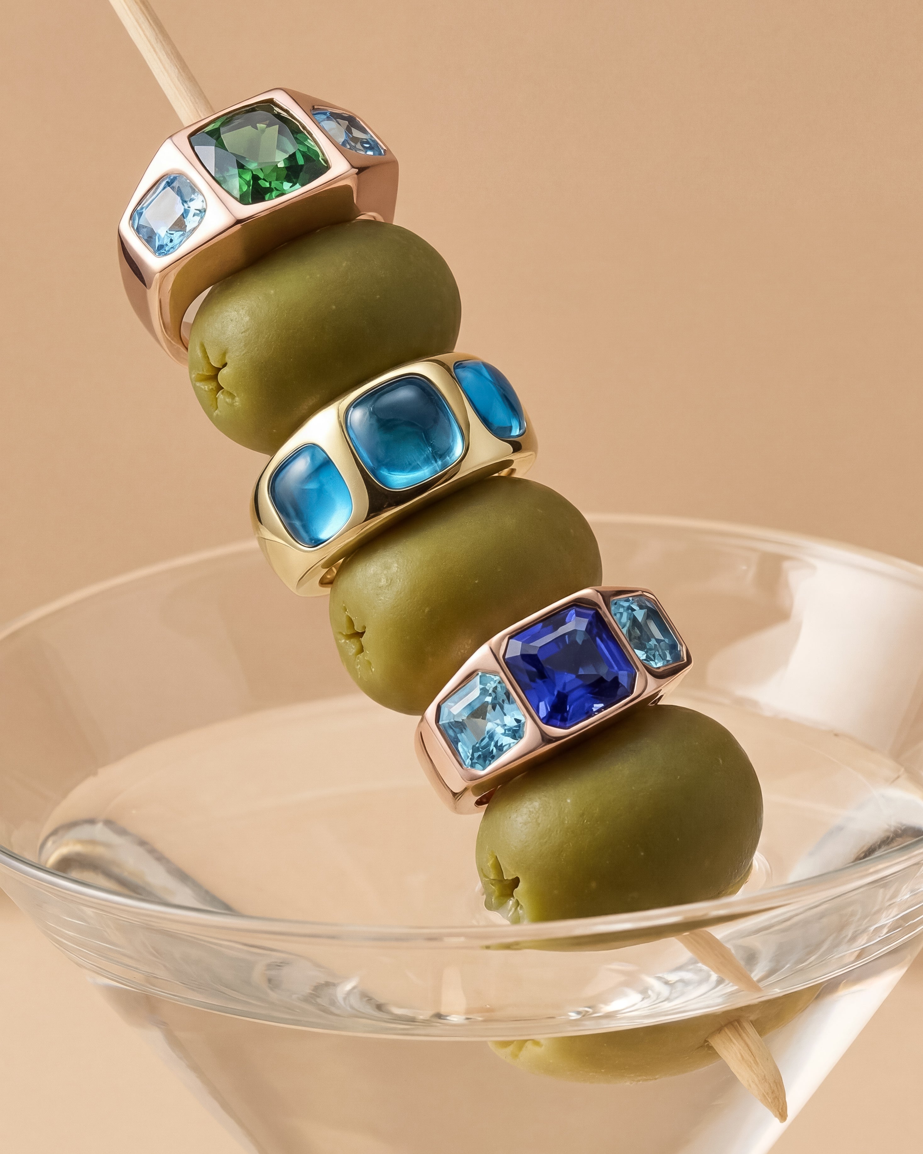 Für meine Kollektionen verwende ich ausschließlich natürliche Steine und 18 Karat Gold – das Beste, was die Natur zu bieten hat. Alle Stücke sind mit einer eingravierten Schwalbe versehen – als Zeichen für Freiheit, Hoffnung und Verbundenheit.